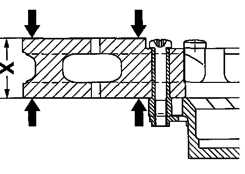 - Measure the brake disc thickness dimension - X-, with a suitable micrometer screw or a brake disc gauge in the area of the inner and outer friction surface traces -arrow-.