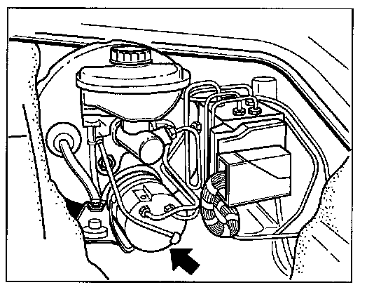 NOTE: The booster pump -1- remains fitted (installed) during removal and installation of the brake master cylinder.