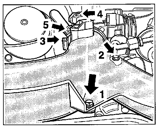 - Fasten pressure pipe with 2 spring band clamps, 1 screw-type hose clamp and 3 hexagon-head bolts (a/f 10, 10 Nm (7.5 ftlb.)).
