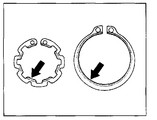 2. Install the Seeger circlip ring. The -slanted surface- of the Seeger circlip ring faces upwards (to the fastening screw).