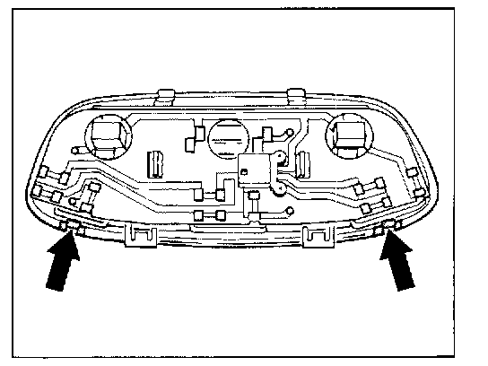 3. Remove interior light. Carefully unclip the light lens on the switch side -arrow- and remove.