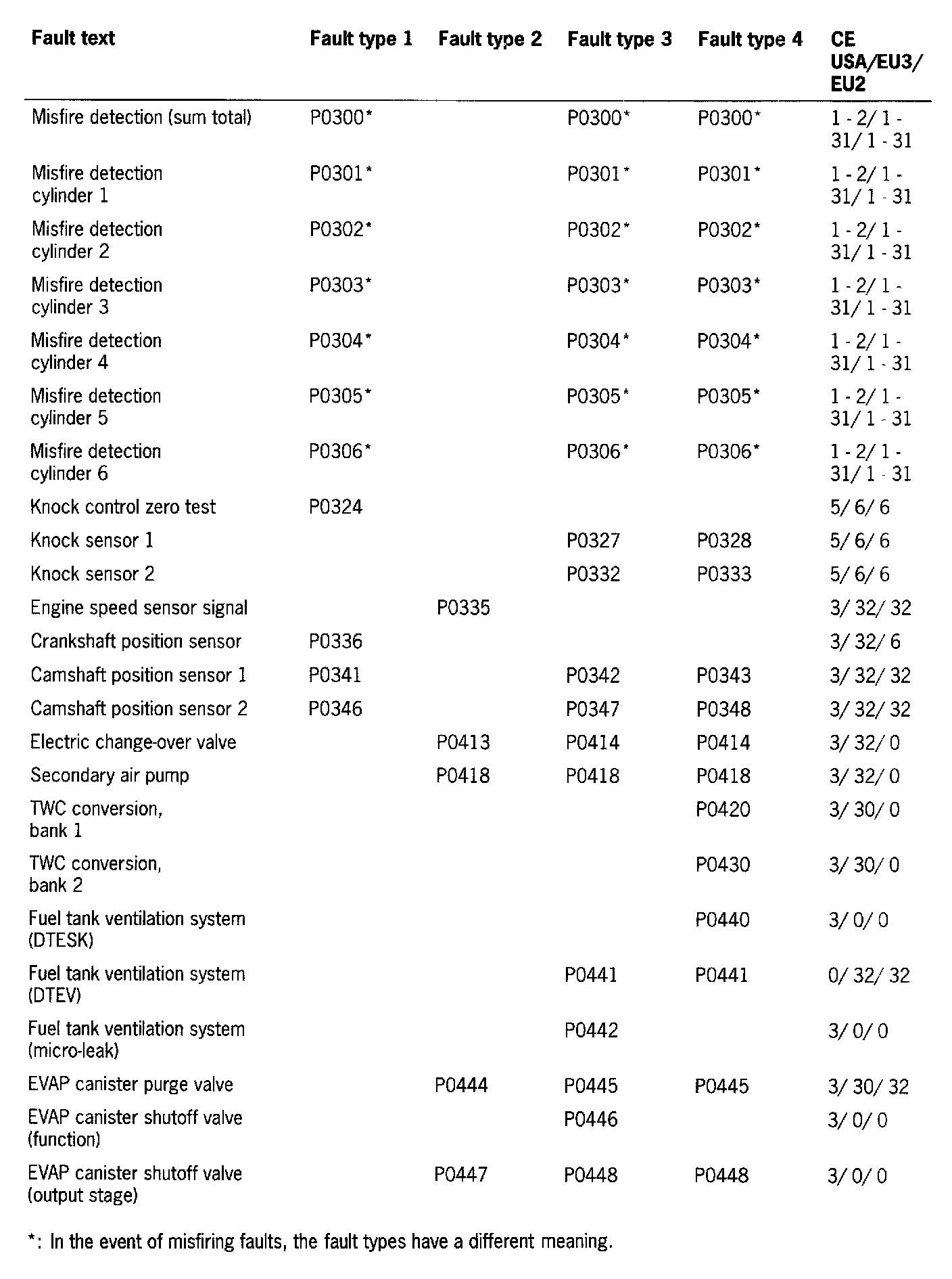 *: In the event of misfiring faults, the fault types have a different meaning.