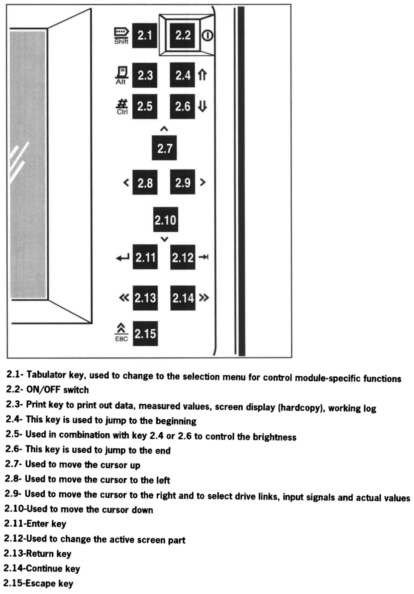 The Porsche System Tester II can be operated with the built-in keys or using a connectable country-specific PS/2 keyboard (option).
