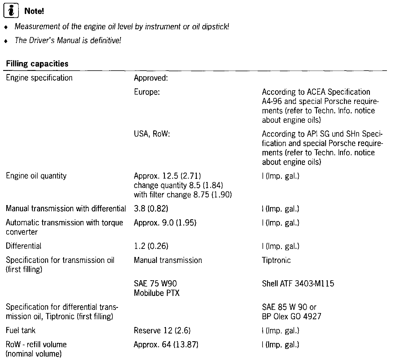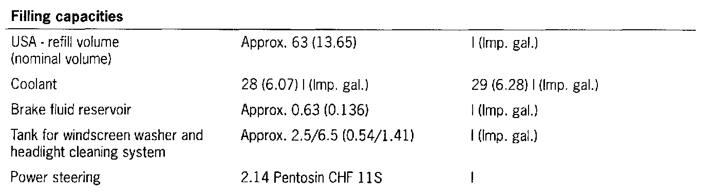 Filling Capacities