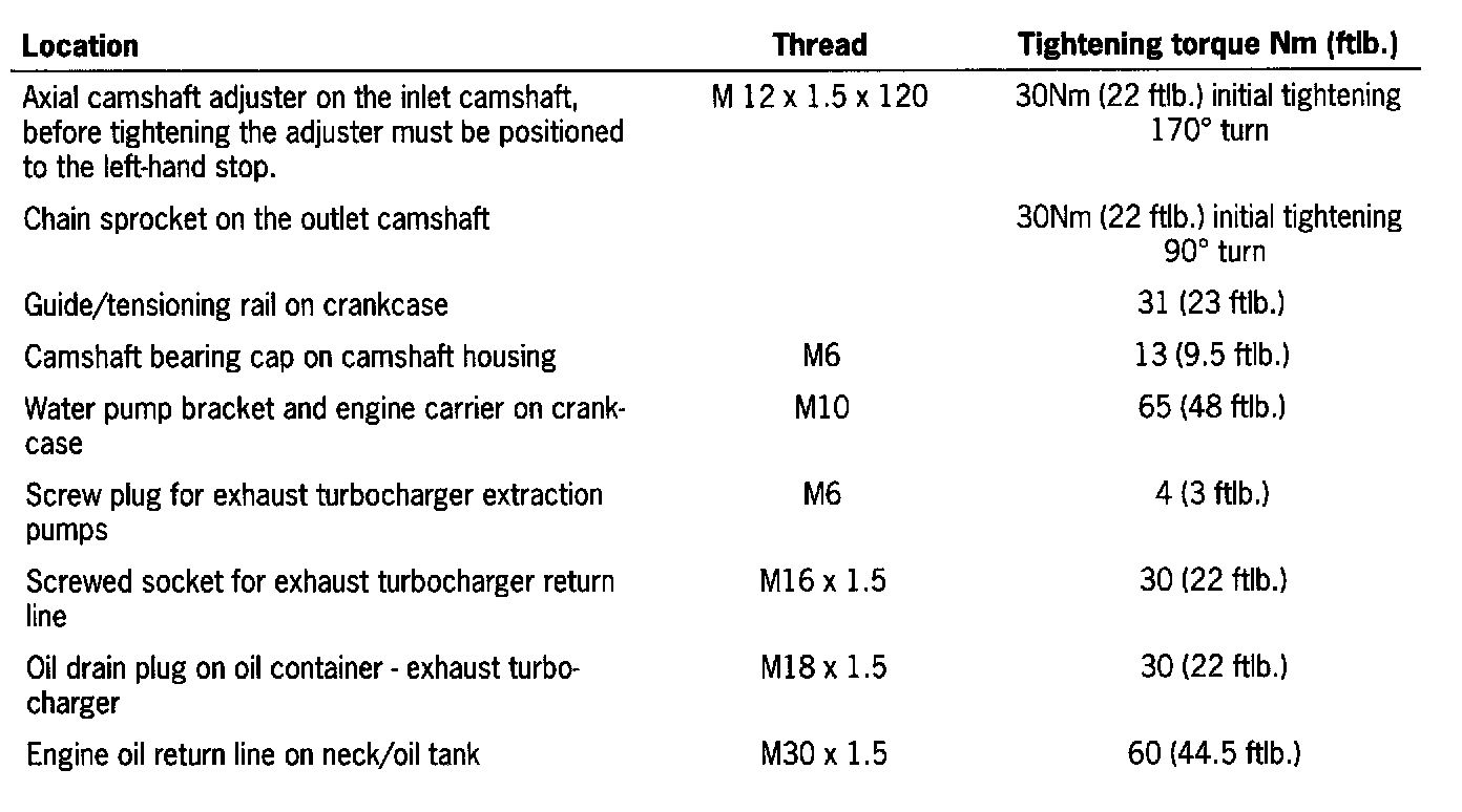 The fastening screws of the inlet camshafts and the outlet camshafts must always be replaced.