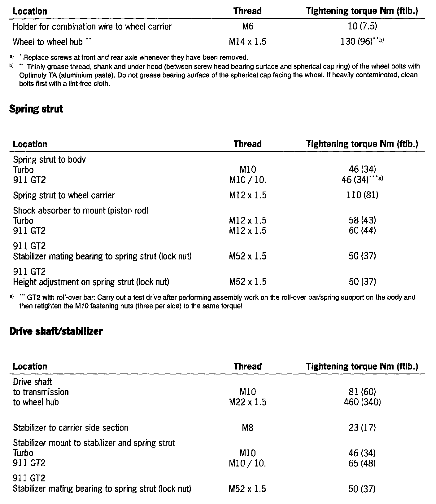 Tightening Torques For Rear Axle