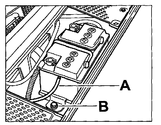 2. Screw in fastening screw -B-, position battery and tighten the fastening screw. Tightening torque: 23 Nm (17 ftlb.)