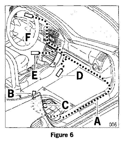 3.6 Route and secure antenna lead from the service grommet in the firewall behind the dashboard along to the right center console.