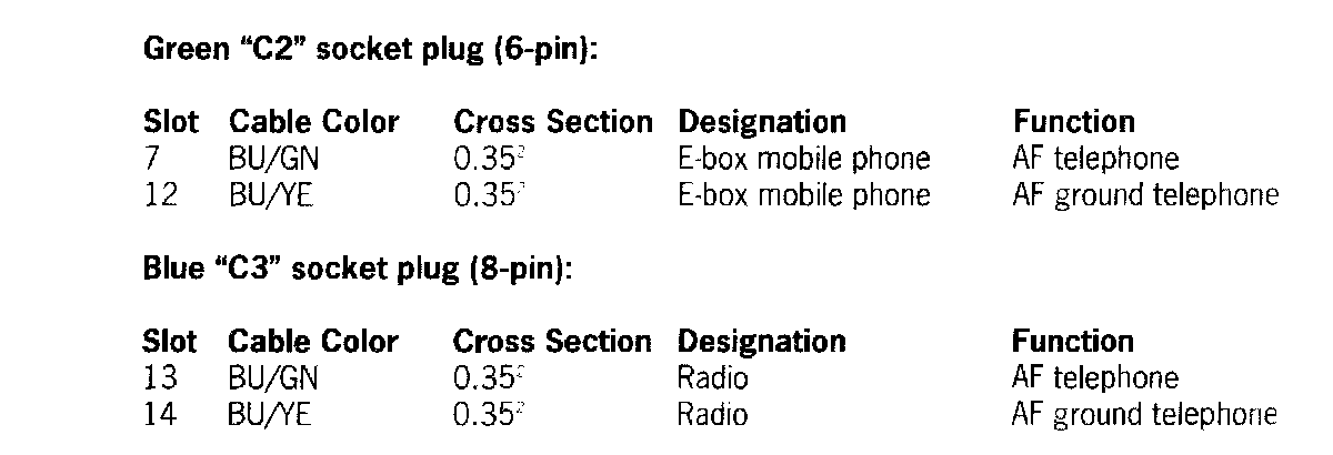4.9.1 The green "C2" socket plug (6-pin) is always bound to the electrical wiring harness. This one can only be used for vehicles as of MY'03.