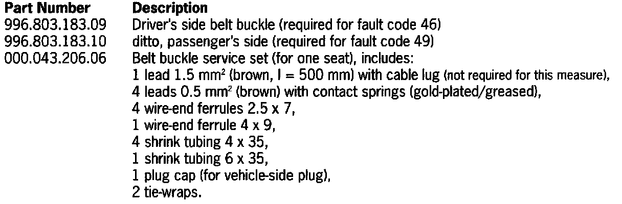 Depending on the fault code, changing the driver's side seat plug connection plug and installing a new belt buckle on the driver's seat (fault code 46) or passenger's seat (fault code 49).