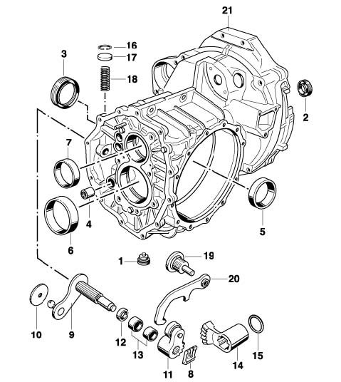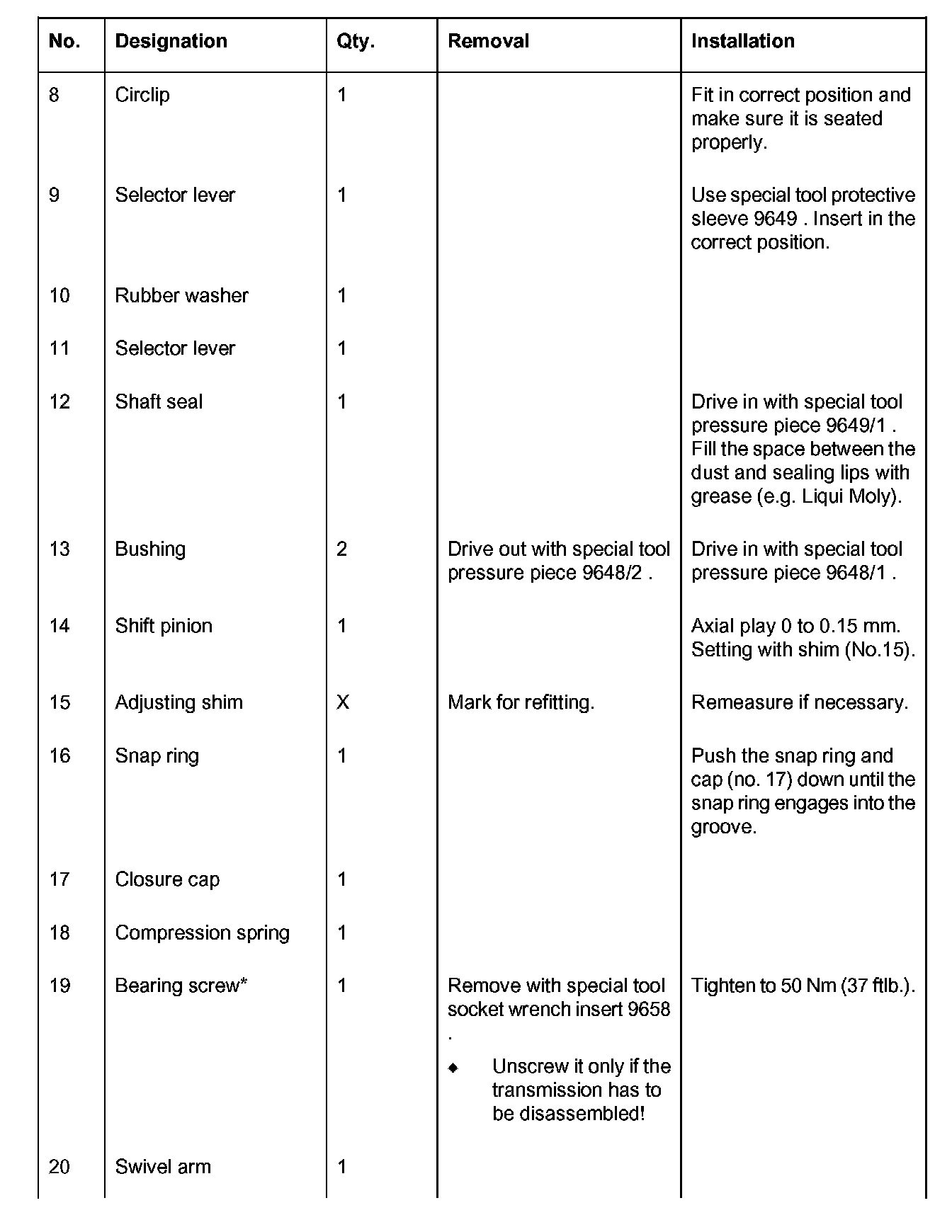 ^ Parts of the shifting mechanism will fall into the transmission if the bearing screw No. 23 is unscrewed.