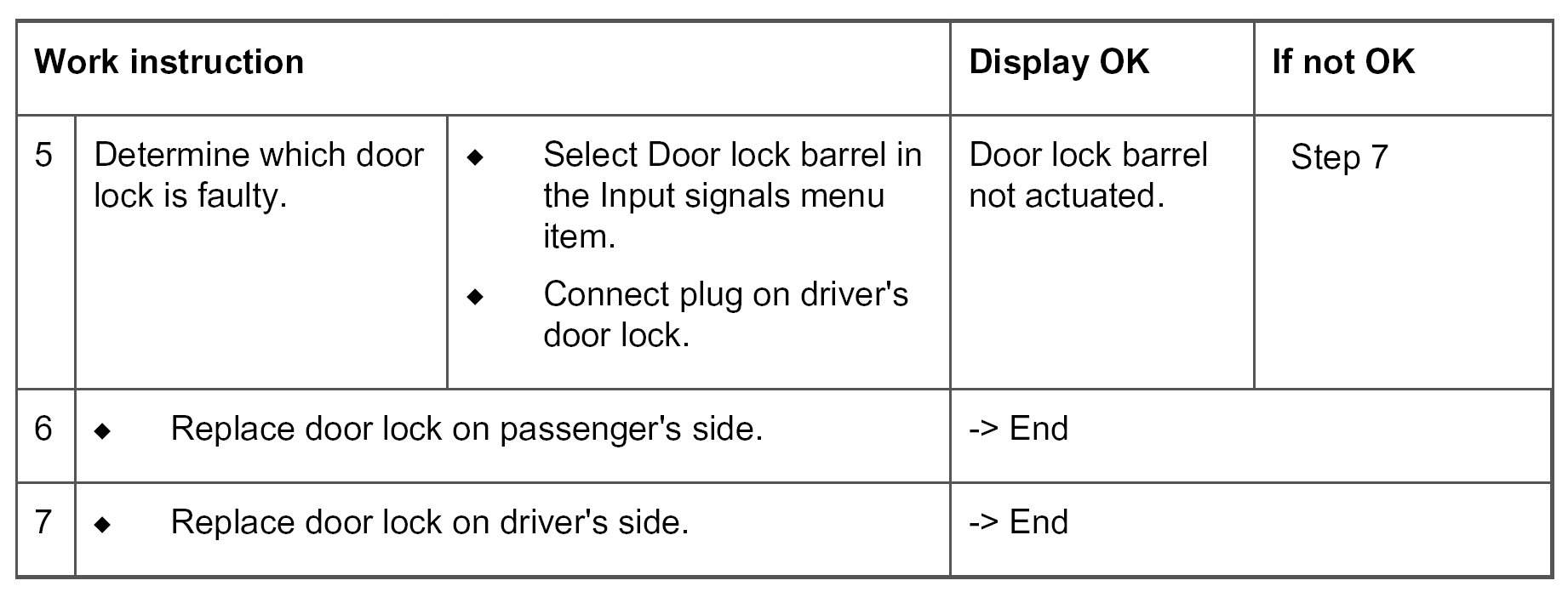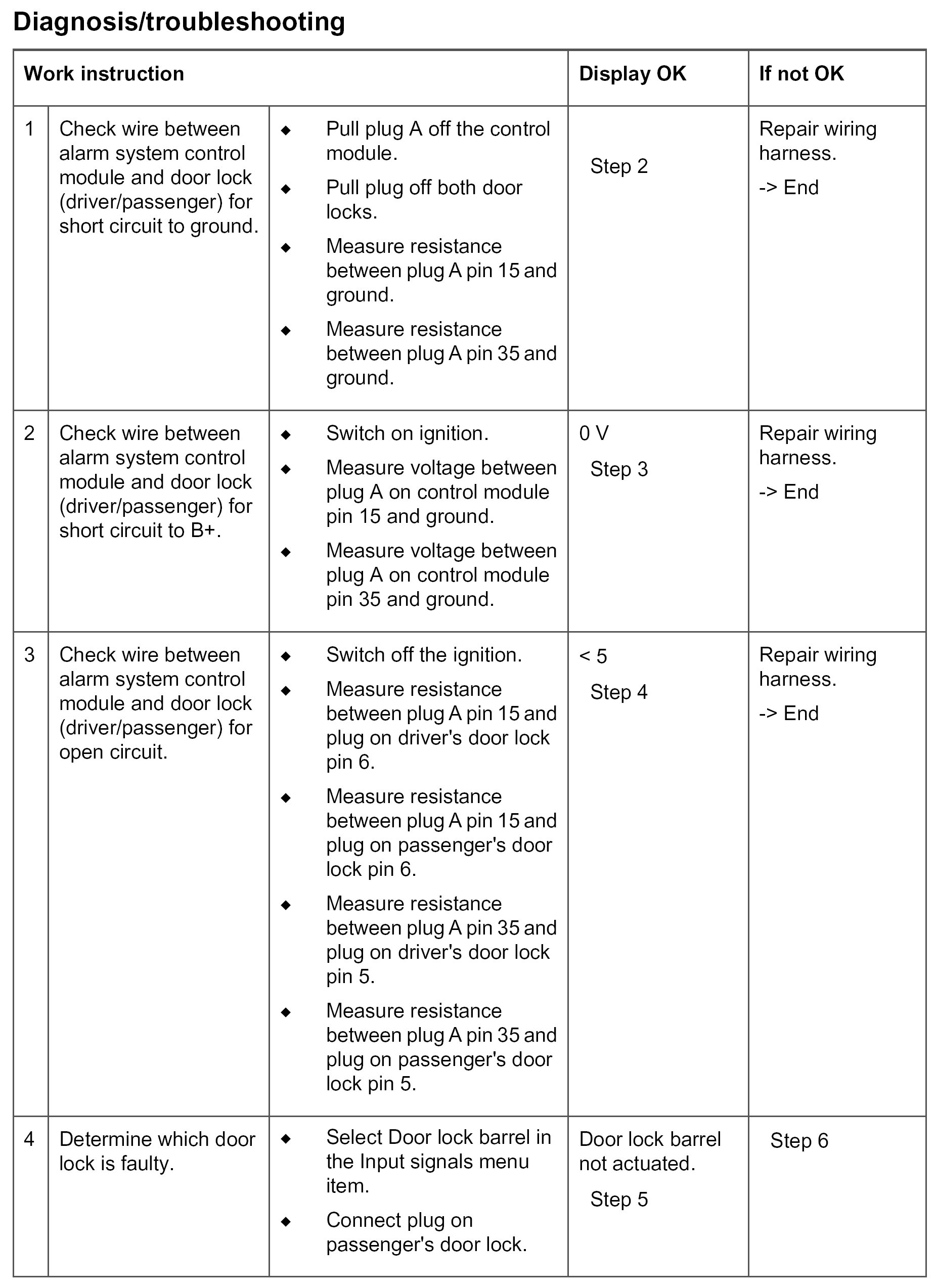 - Short circuit to ground/open circuit in the wiring between the alarm system control module and both door locks