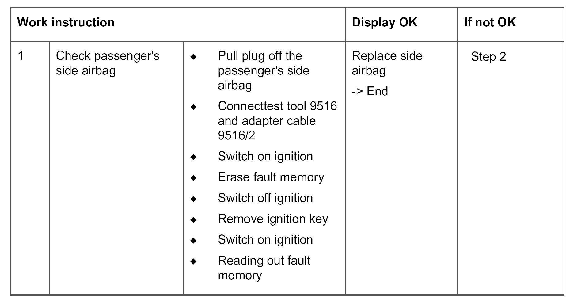 Test tool 9516 and adapter cable 9516/2 instead of the side airbag