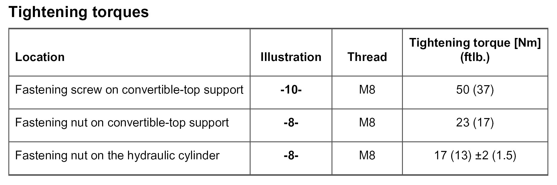 Tightening torques