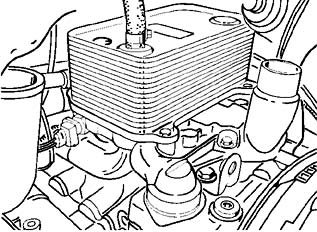 Replace the four O-rings between the bracket and oil cooler. Insert O-rings with grease. Push on the oil cooler again.