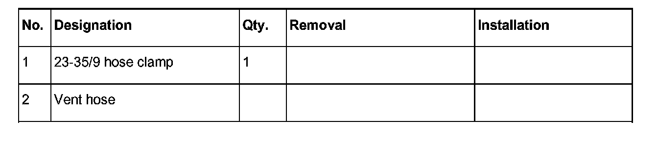 Tighten oil return line on the oil container. Make sure to counter with a wrench at the oil container when doing this. Push on the ventilation hose again and tighten the hose clamp.