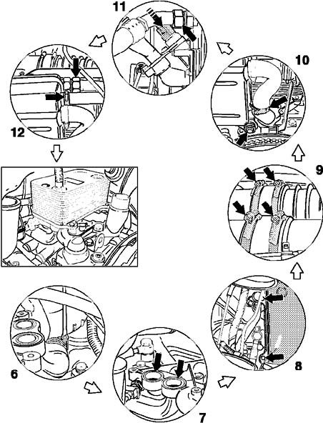 6 Fastening coolant line.