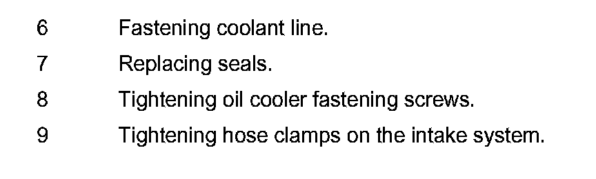8 Tightening oil cooler fastening screws.