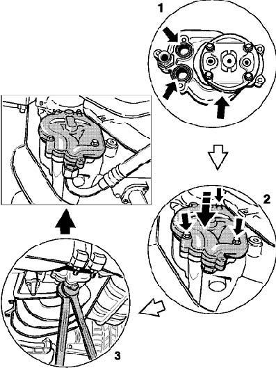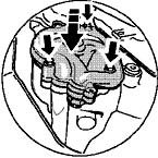 Put on oil extraction pump. When doing this, make sure that the driver and the input shaft of the oil extraction pump are correctly aligned. Tighten the three fastening screws to 13 Nm (10 ft. lbs.).