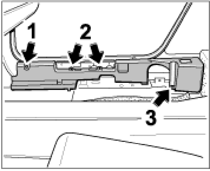 4. Push in the locating peg -1- of the support and check that it is sitting correctly.