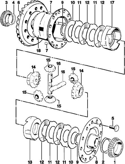 1. Clamp the differential lock into the vice using special tool 9646 and unscrew the crown wheel screws.