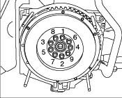 Engine M96/01Drive plate on crankshaft (Tiptronic) M10 x 1 x 25 Nm (12.9 ft. lbs.)