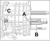 5. Unscrew screw plug -C- and remove the spring with locking pins.