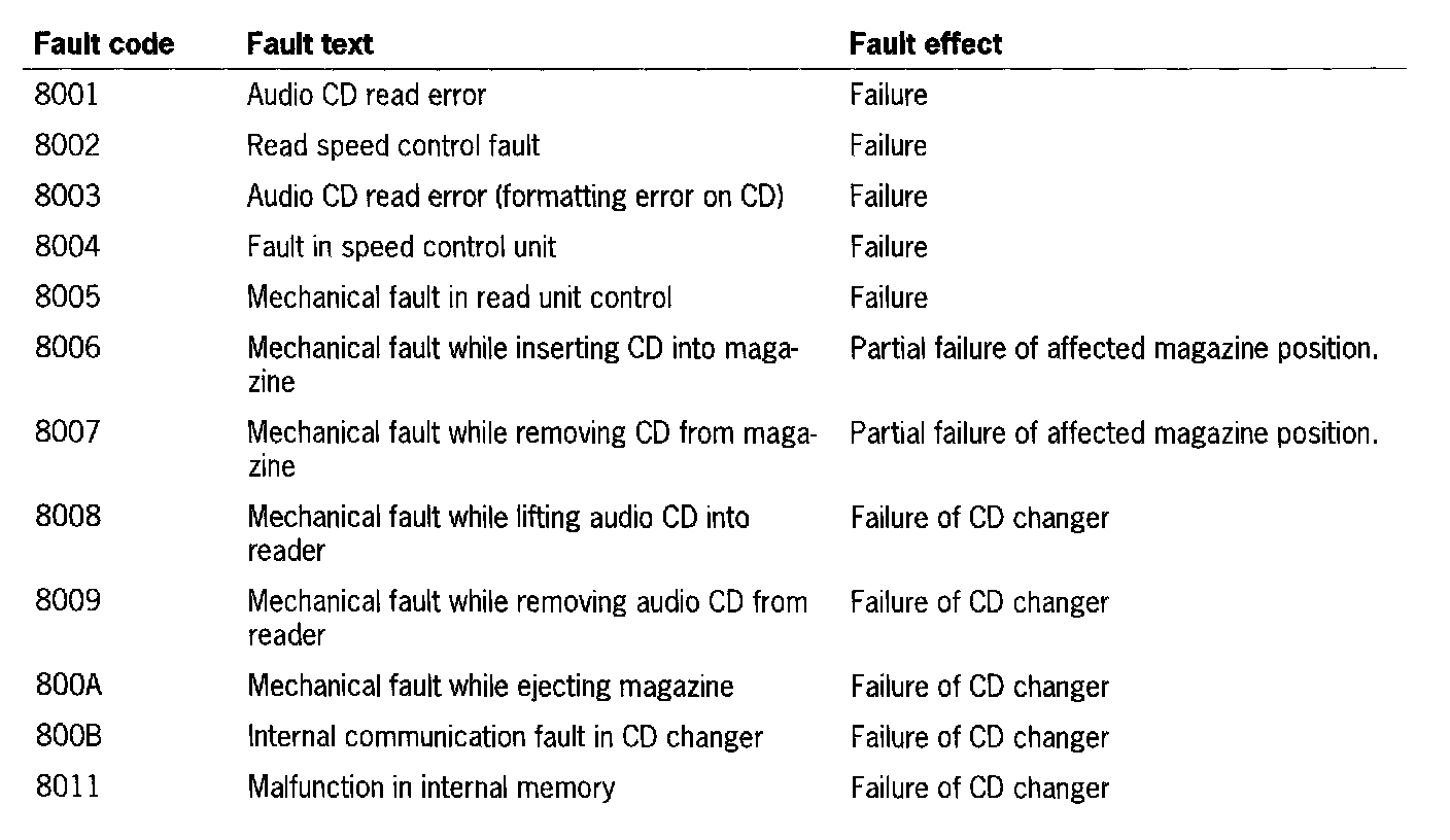 CD Changer Fault Overview