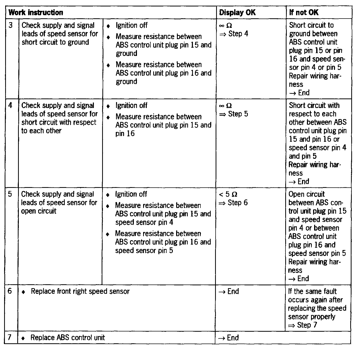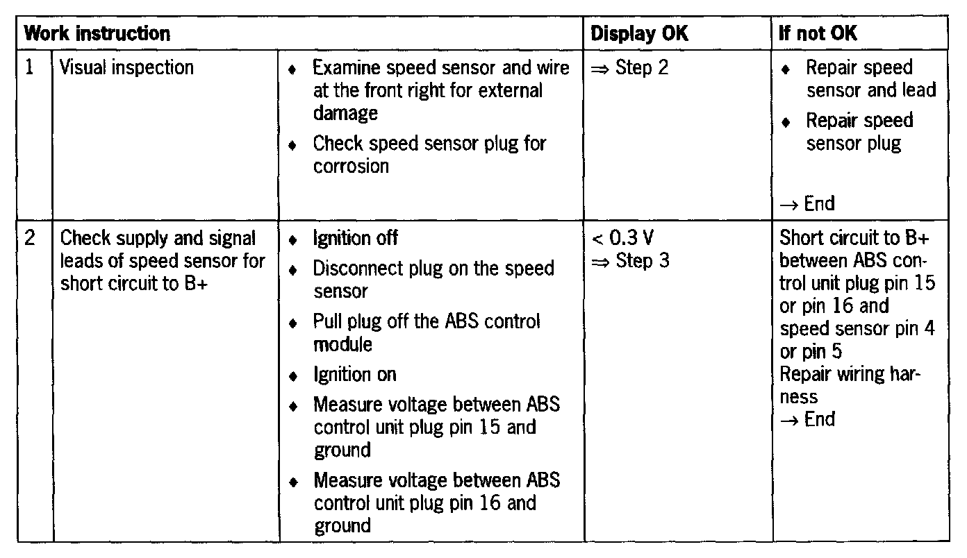 - Short circuit to B+/ground or open circuit between control unit and speed sensor