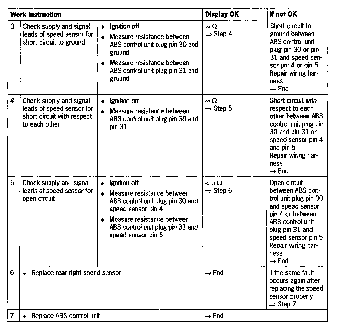 - Short circuit to B+/ground or open circuit between control unit and speed sensor