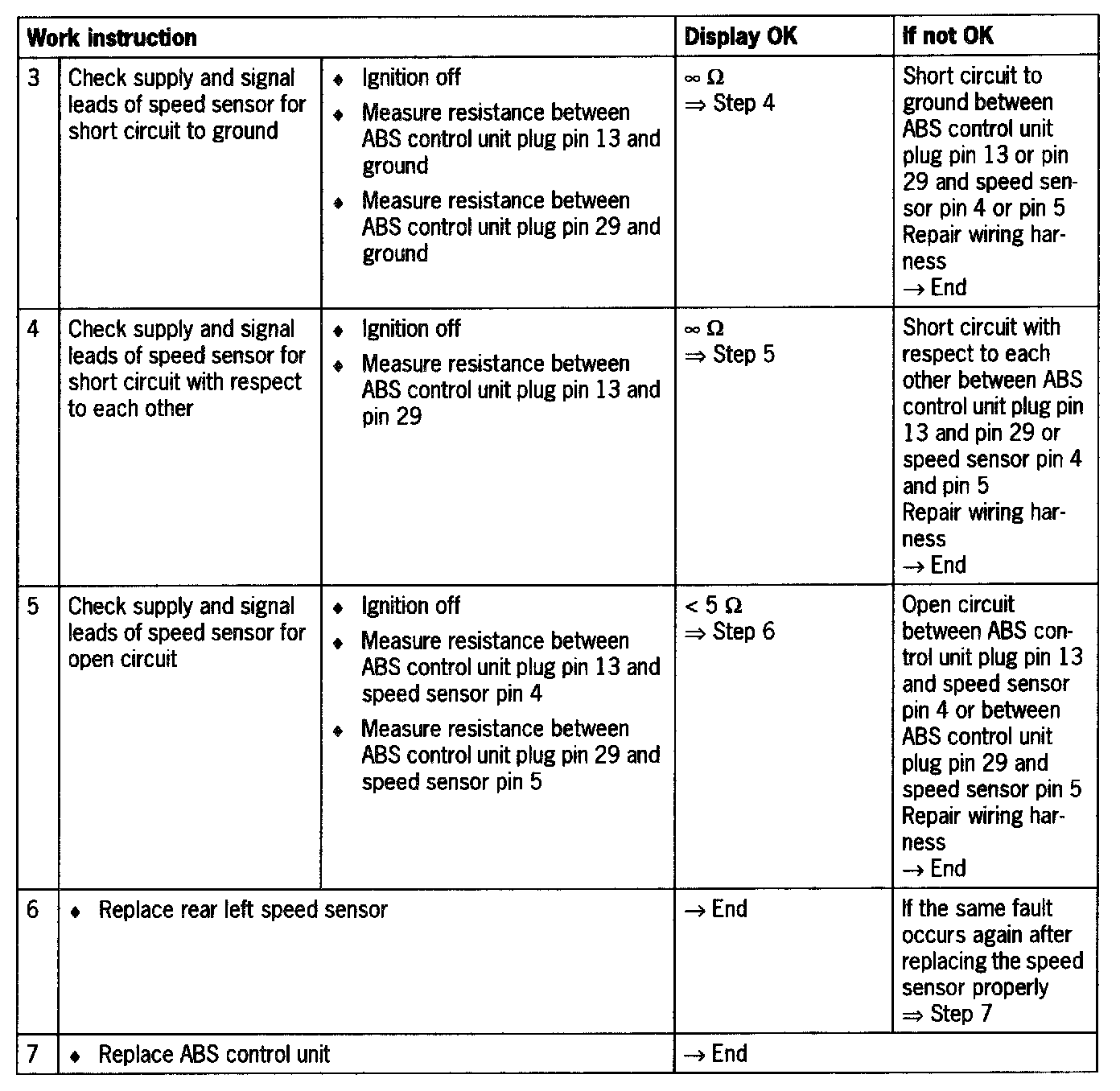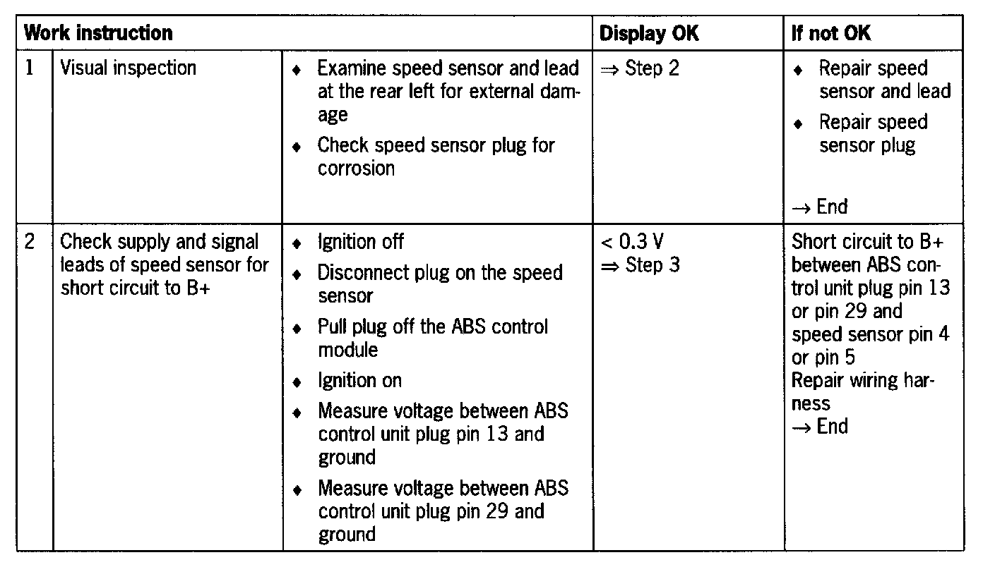 - Short circuit to B+/ground or open circuit between control unit and speed sensor