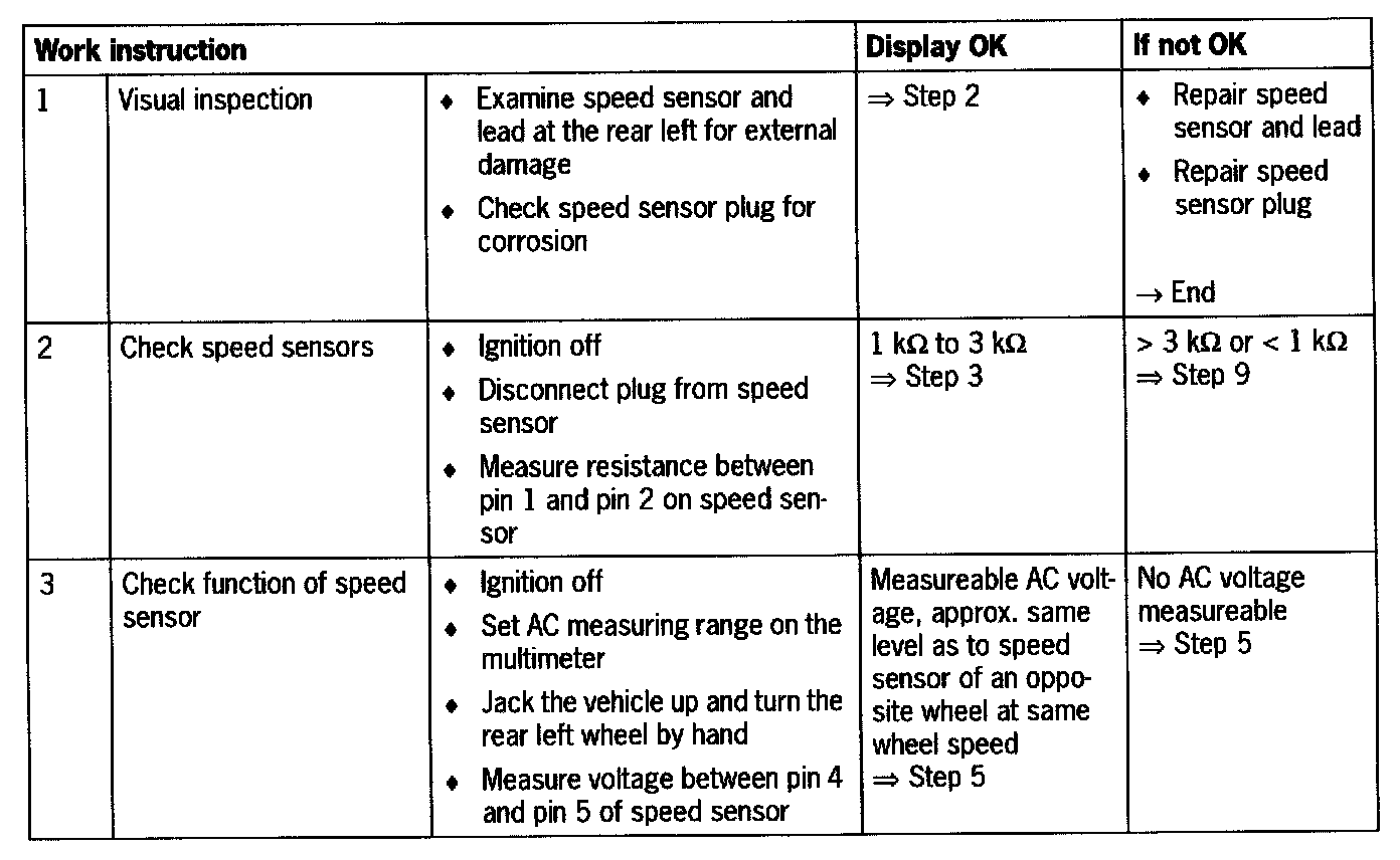 - Short circuit to B+/ground or open circuit between control unit and speed sensor