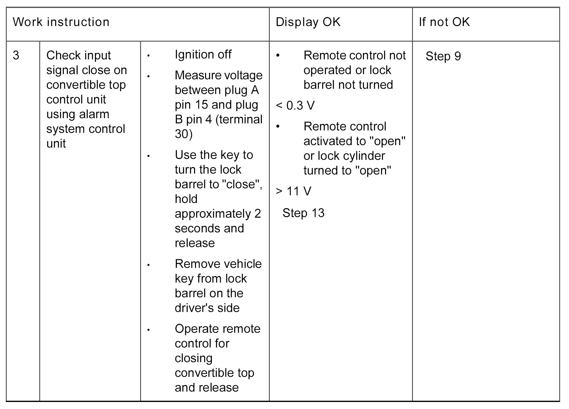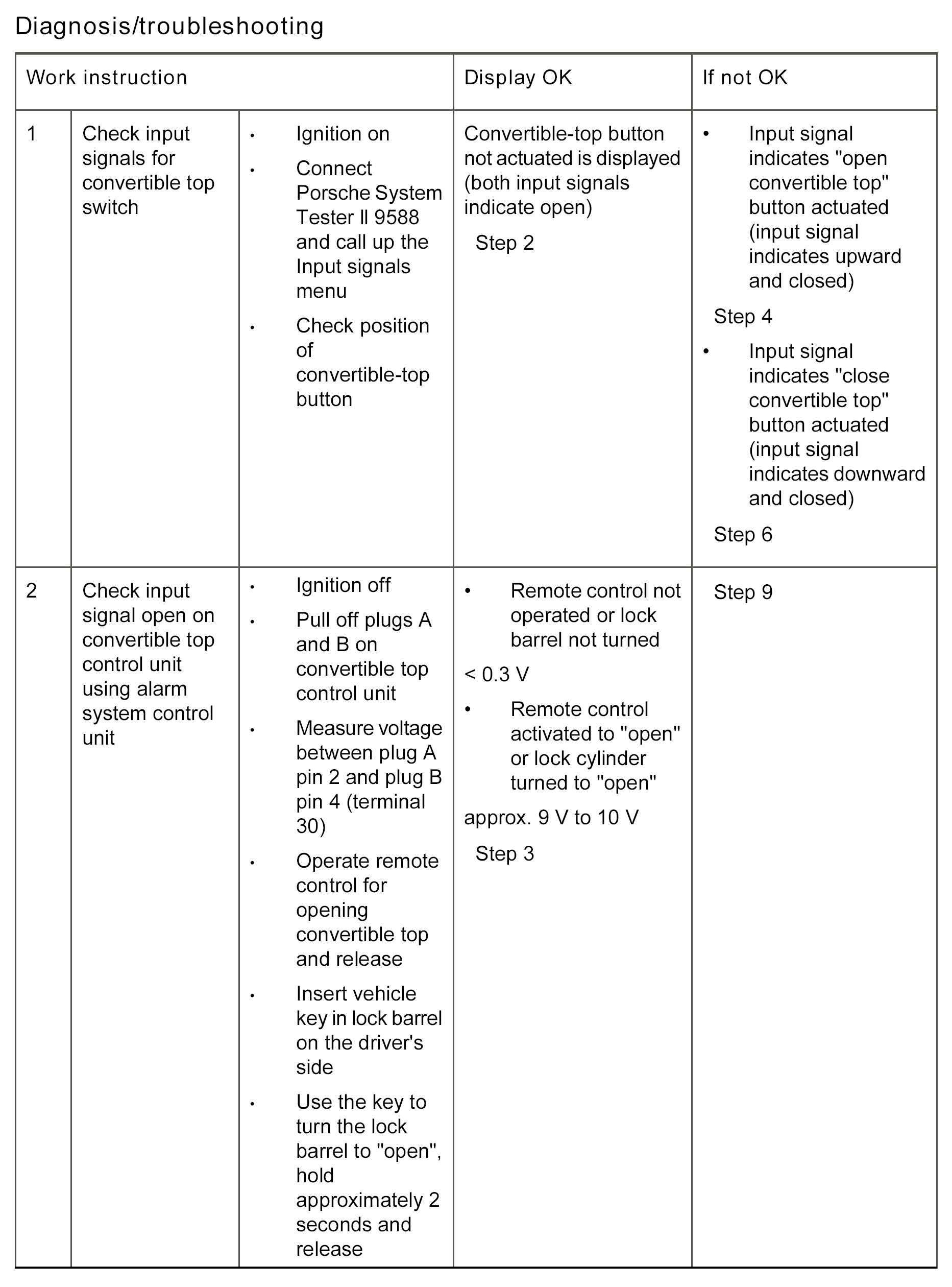 The fault is entered if the signals open and close are present simultaneously in the convertible top control unit.