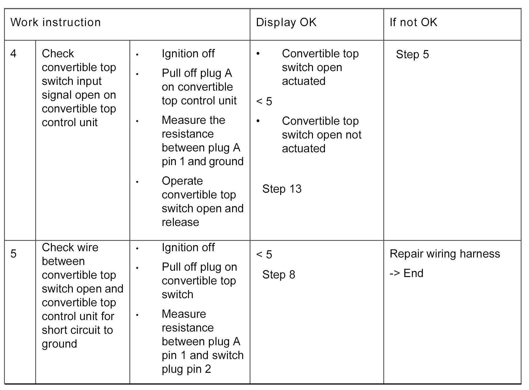 - Convertible top switch defective