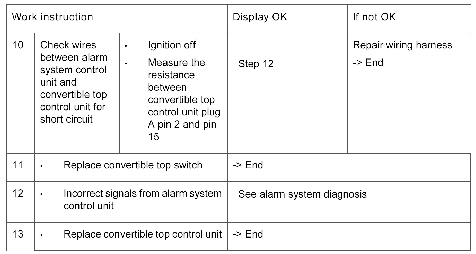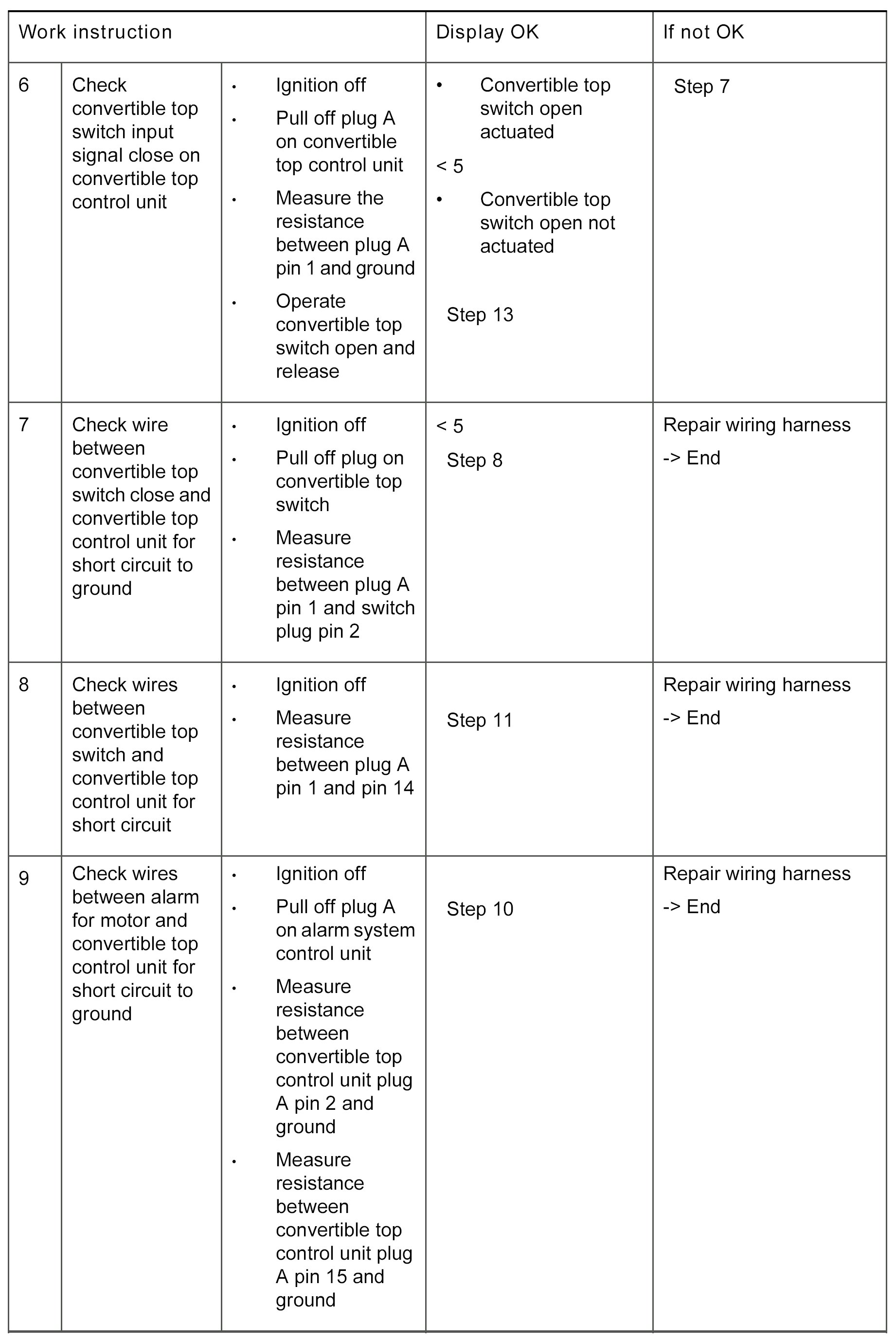 - Short circuit to ground or in wires between convertible top control unit and convertible top switch or alarm system control unit
