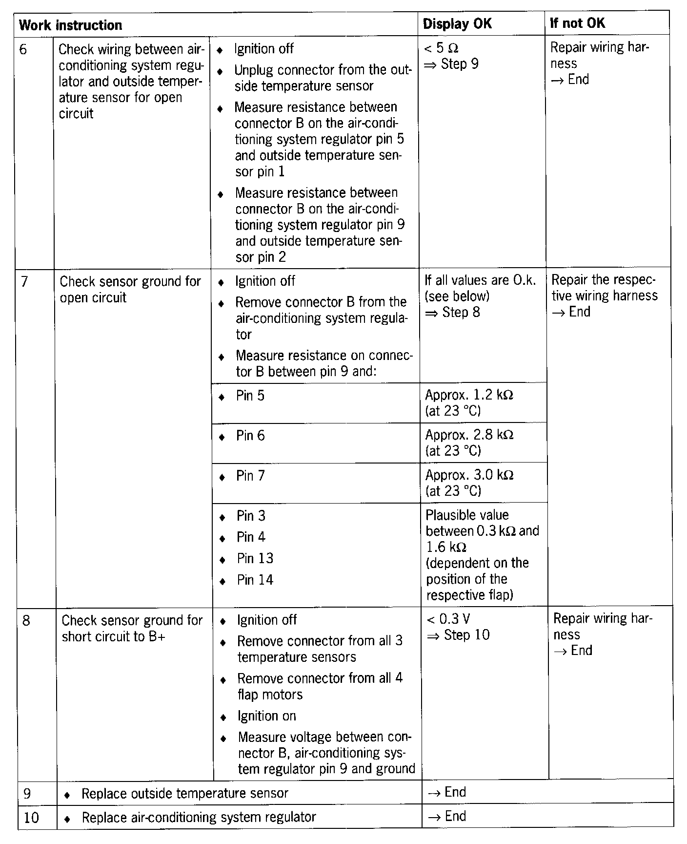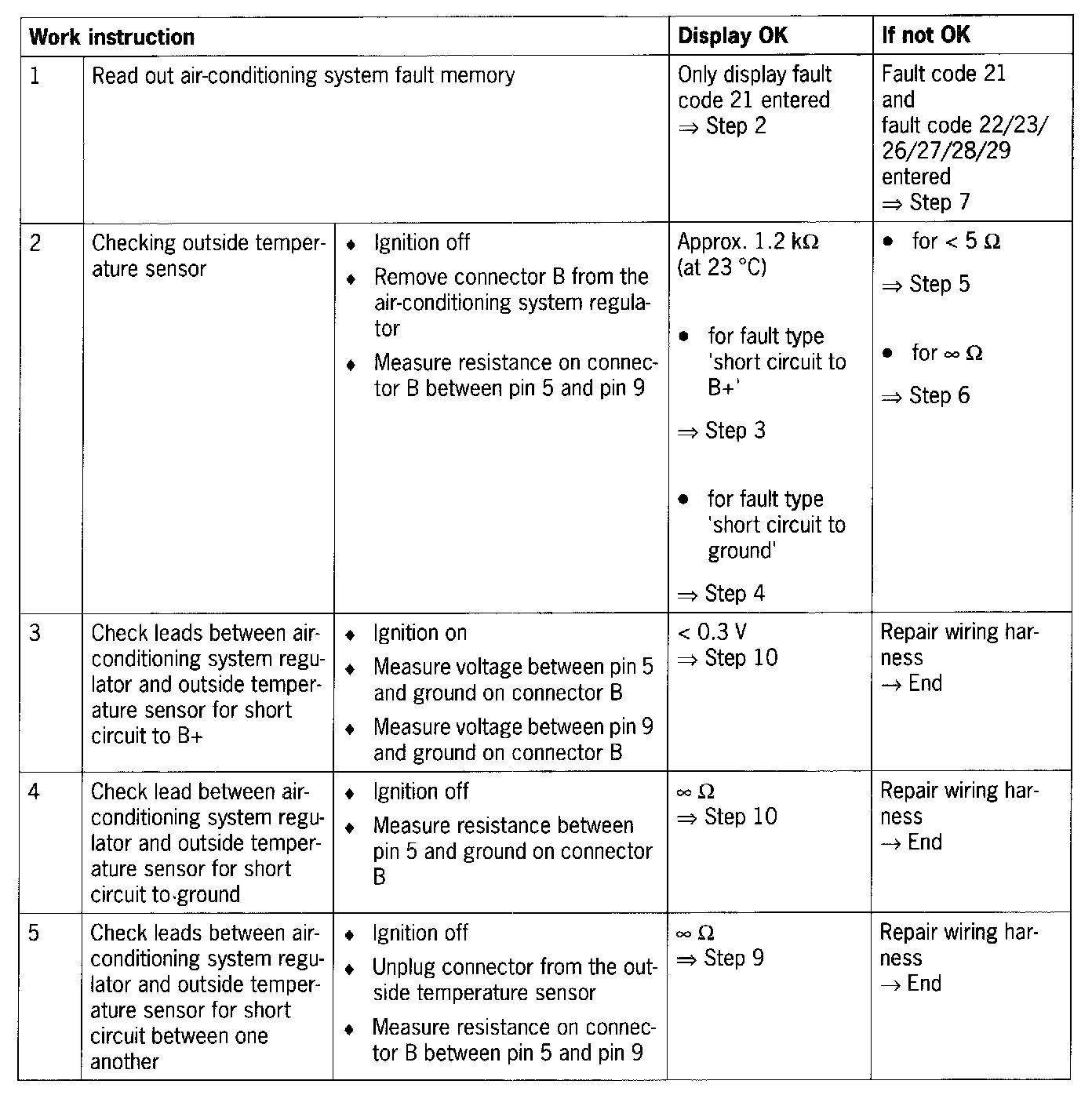 - Short circuit to B+/ground/between one another or open circuit in the wiring between the air-conditioning system regulator and outside temperature sensor
