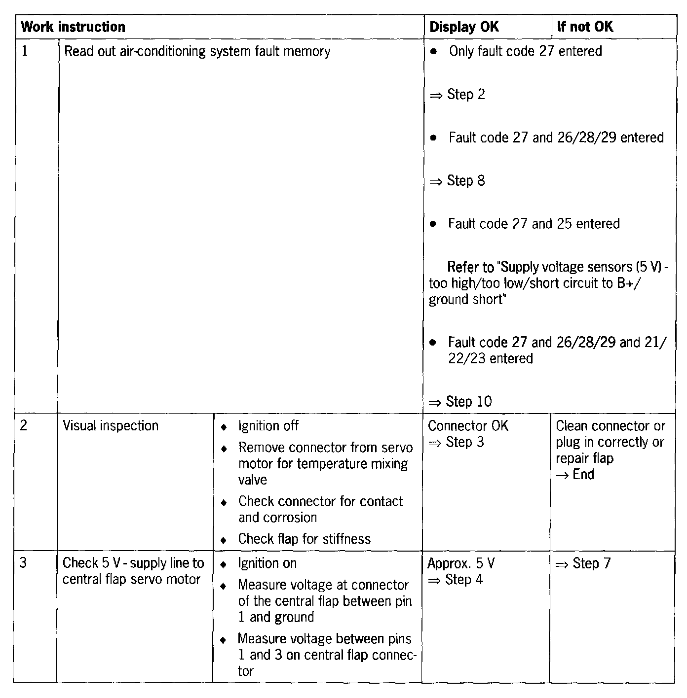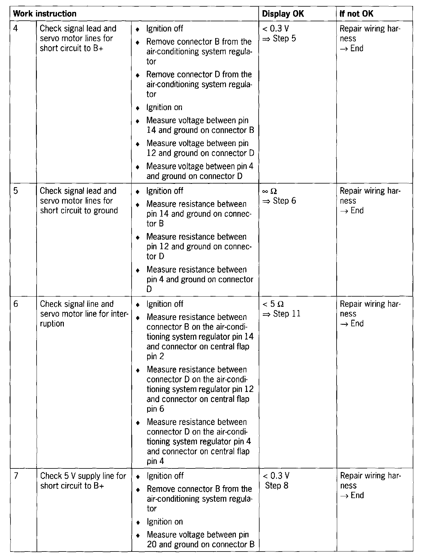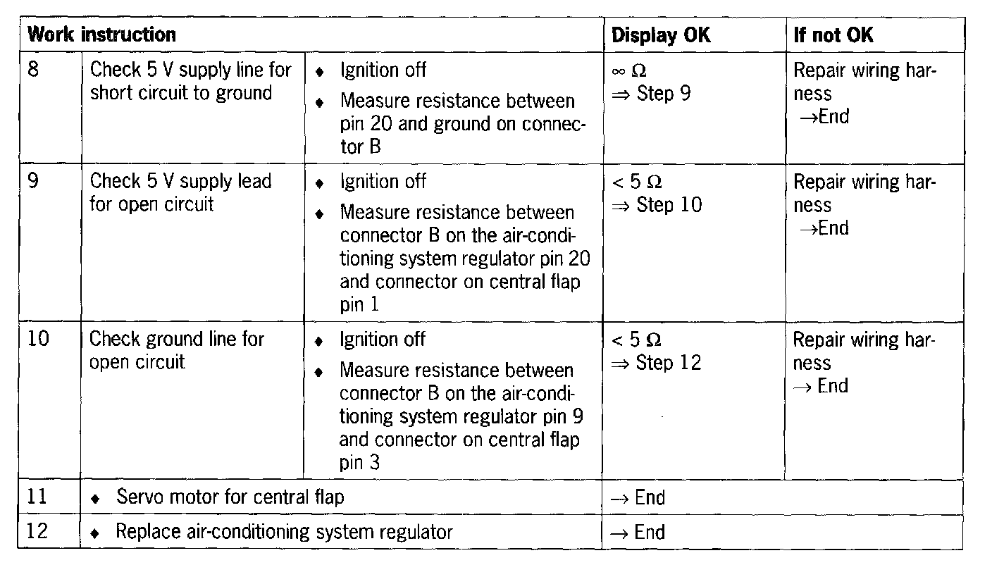 - Short circuit to B+/ground/between one another or open circuit in the wiring between the air-conditioning system regulator and the central flap.