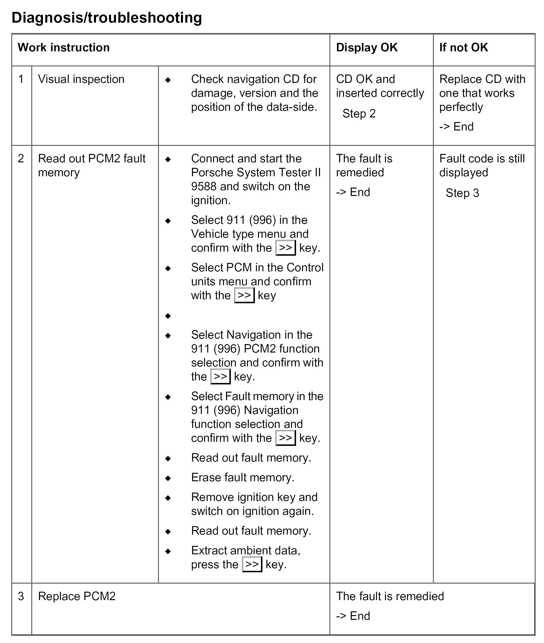 - Deactivate the automatic traffic announcement before performing the diagnosis on the PCM2. If this is not done, the diagnosis will abort.
