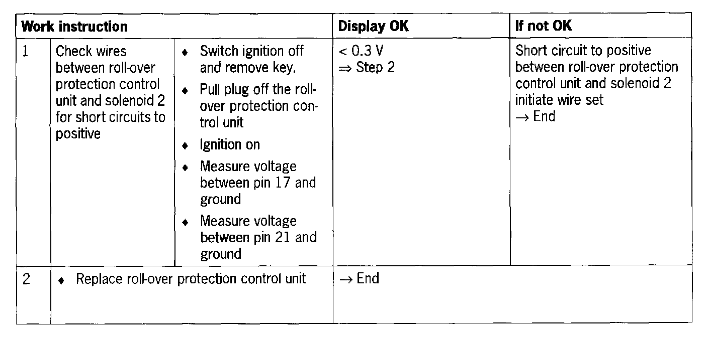 - Short circuit to positive between roll-over protection control unit and solenoid 2