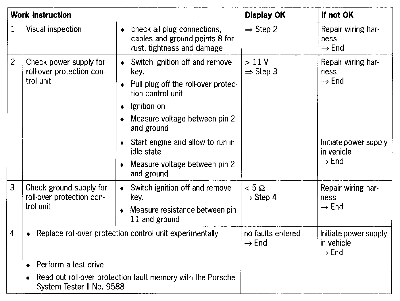 - control unit roll-over protection faulty