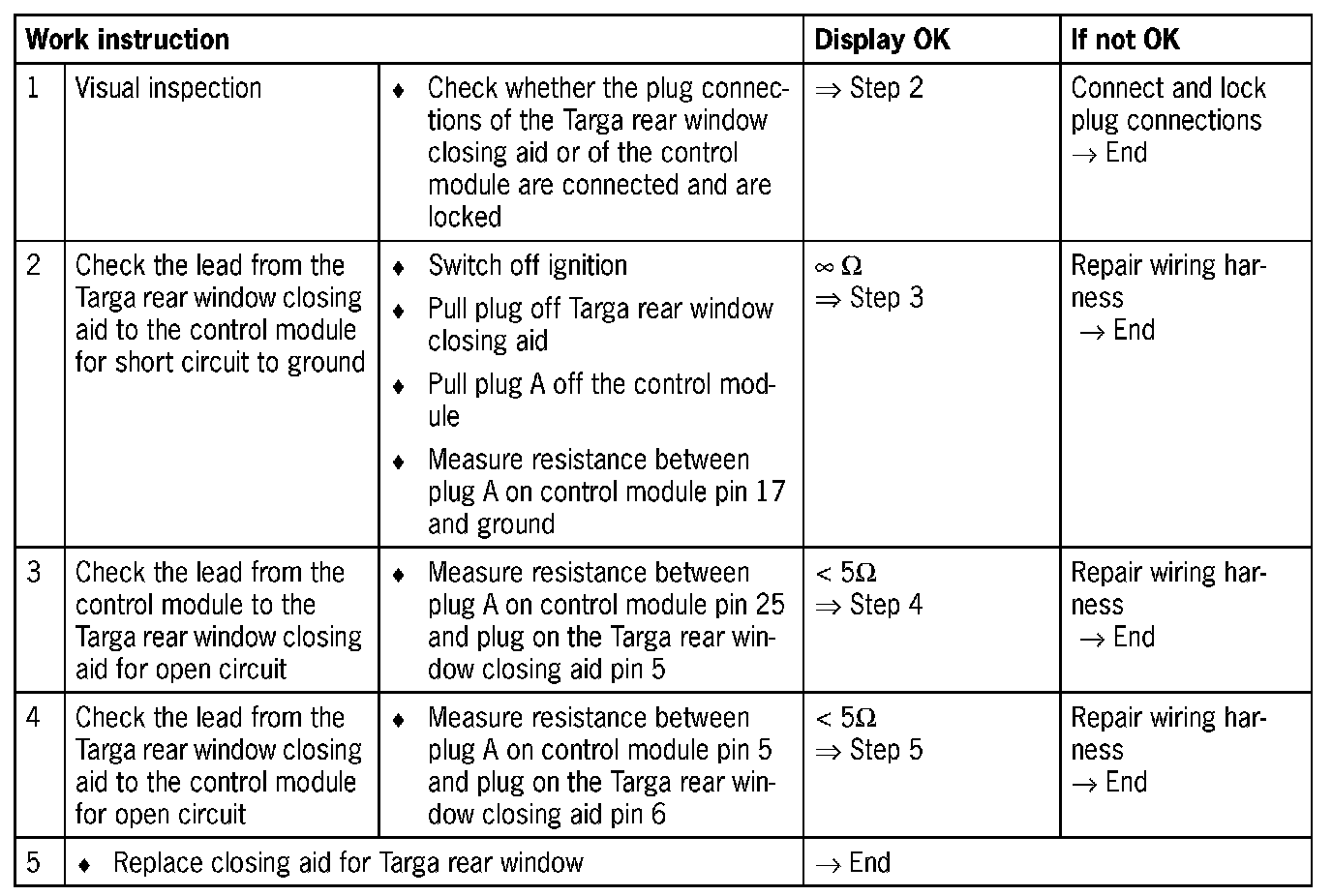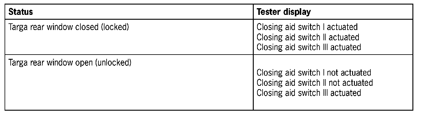 - The status of the three micro switches in the closing aid for the Targa rear window can be read out in the menu item "Input signals" under Closing aid switch I to III.