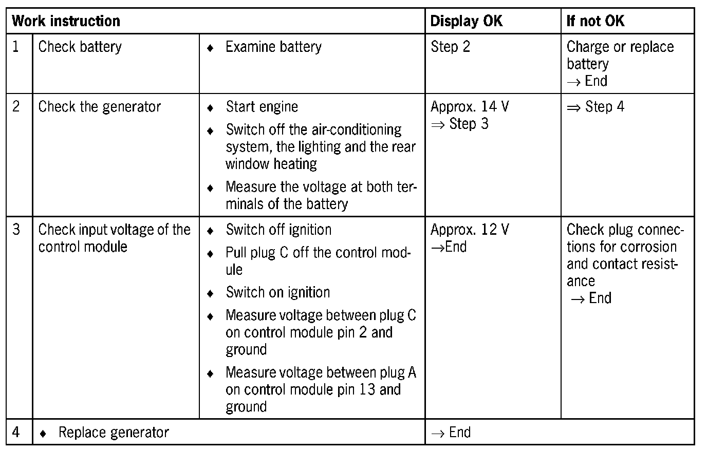 - Supply voltage less than 8.5 V or greater than 16 V during activation. Battery discharged or generator defective.