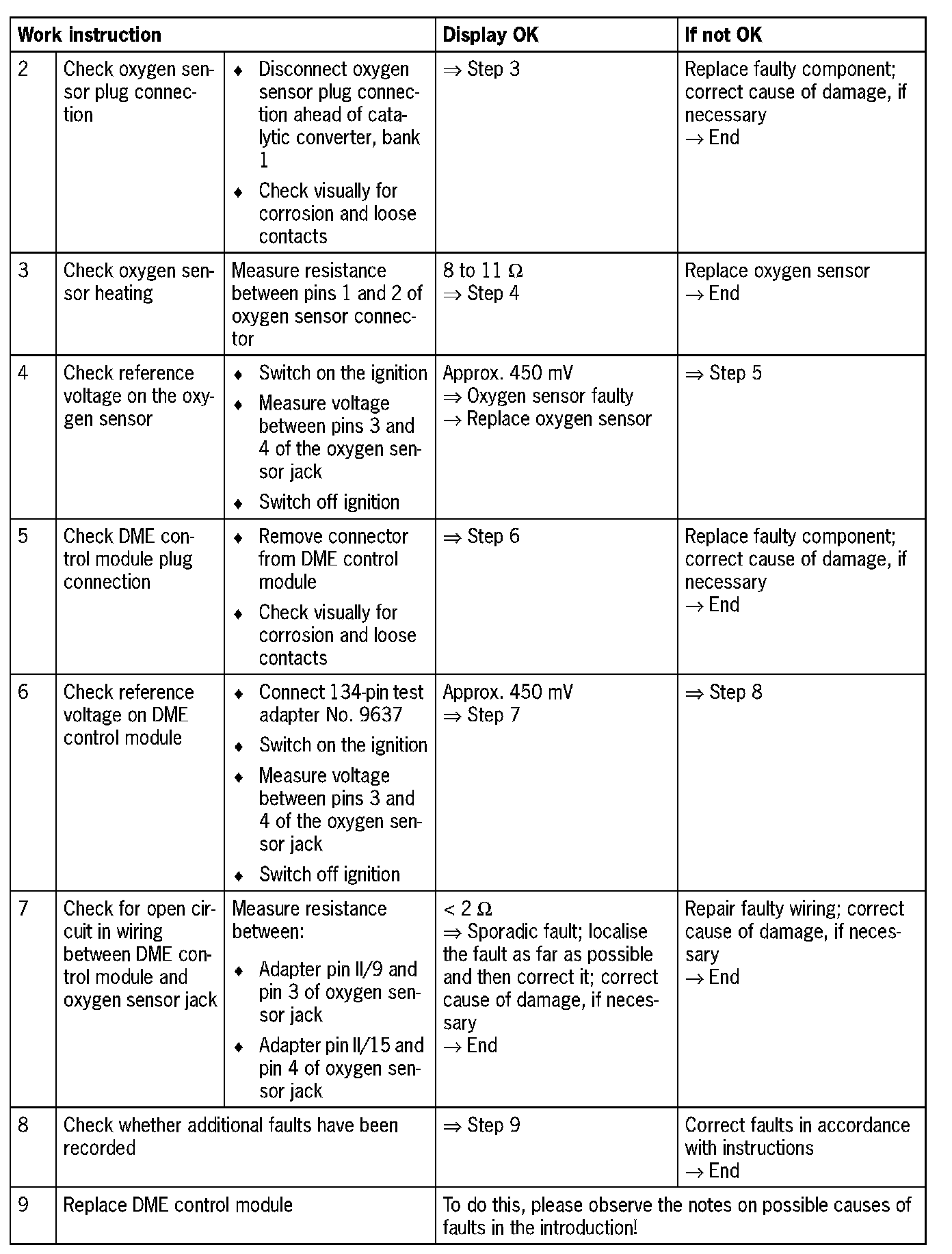 - Oxygen sensor faulty (heater coupling or heating)