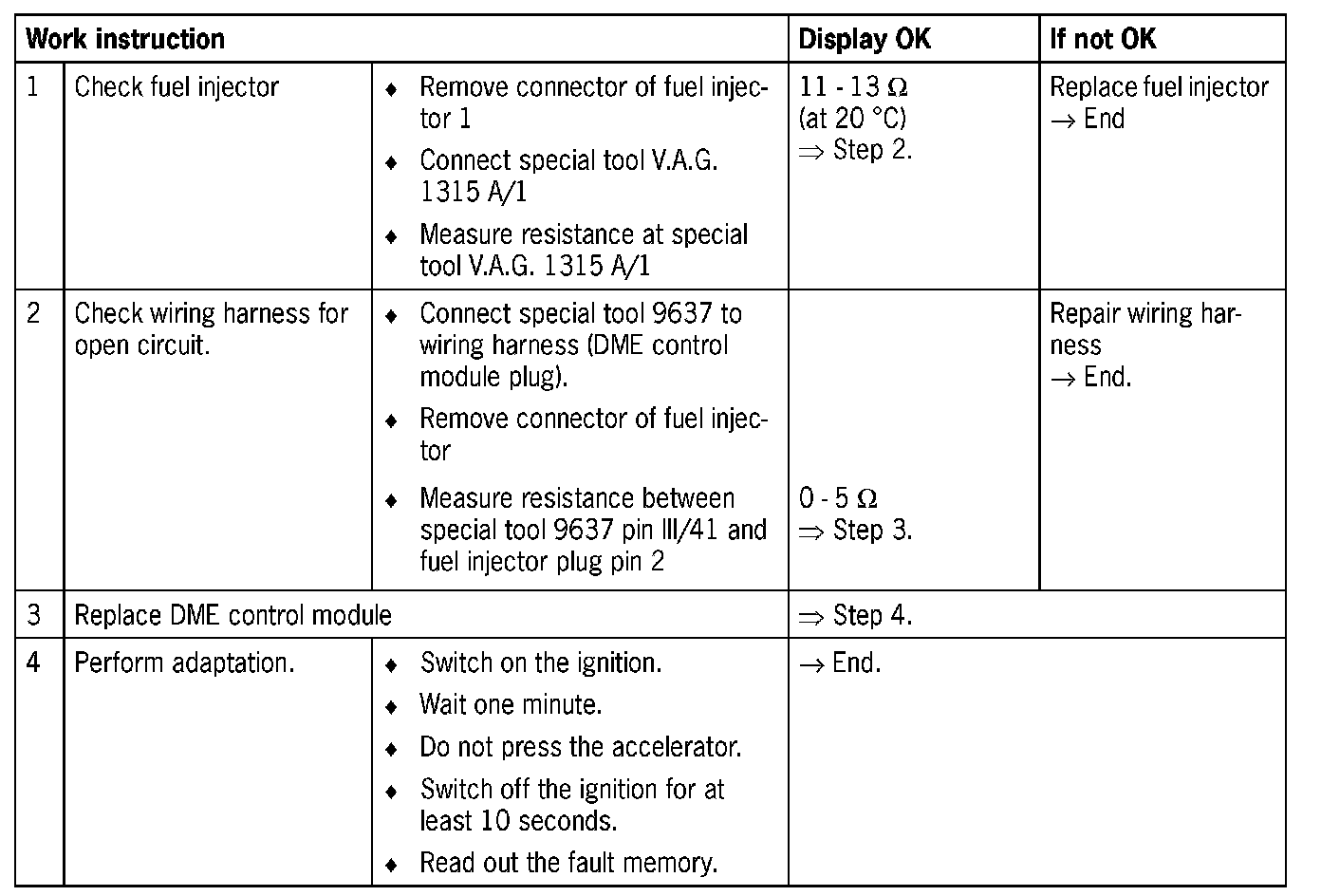 NOTE: Open circuit causes the fuel injector to be continually closed.