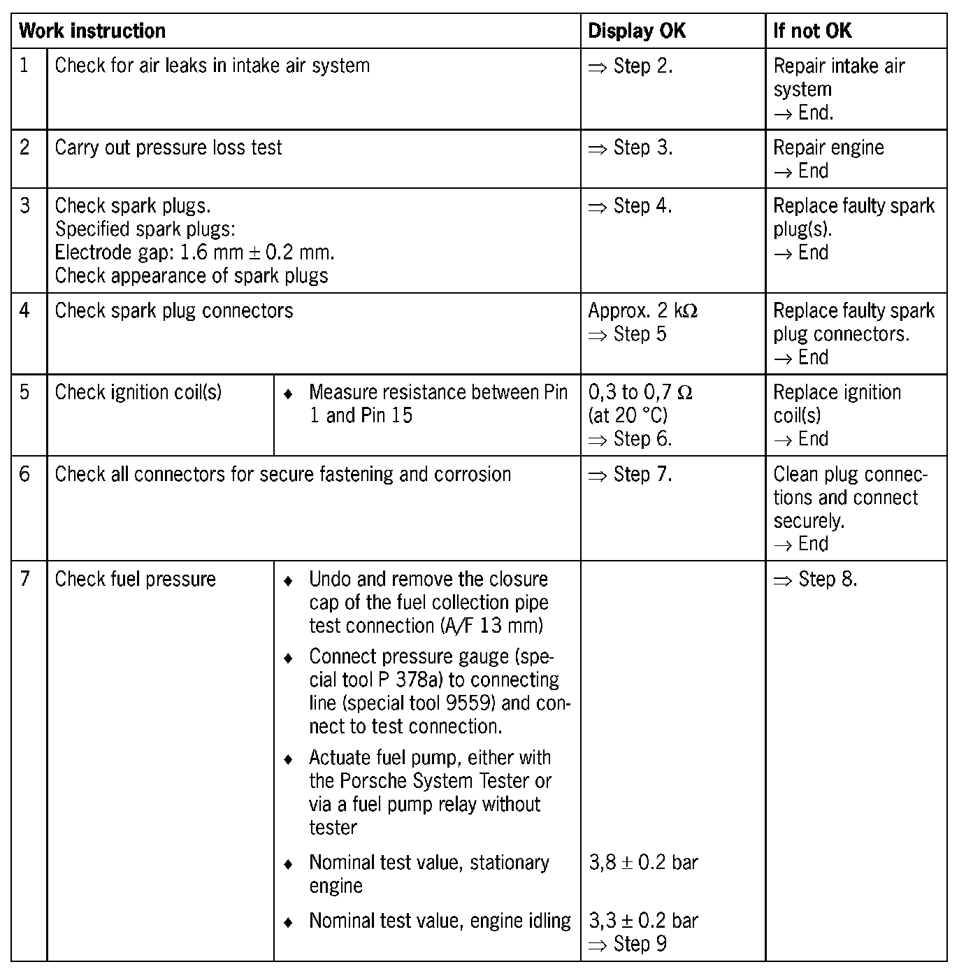 At speeds above 4,000 rpm, misfires may be stored. Delete the fault memory and repeat the test.