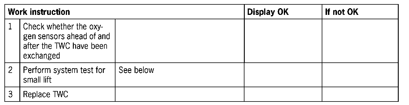 NOTE: If an ageing oxygen sensor is recorded in conjunction with a fault in the TWC, a check must be performed with a new oxygen sensor to see whether a TWC fault is still indicated.
