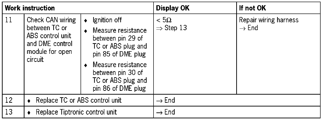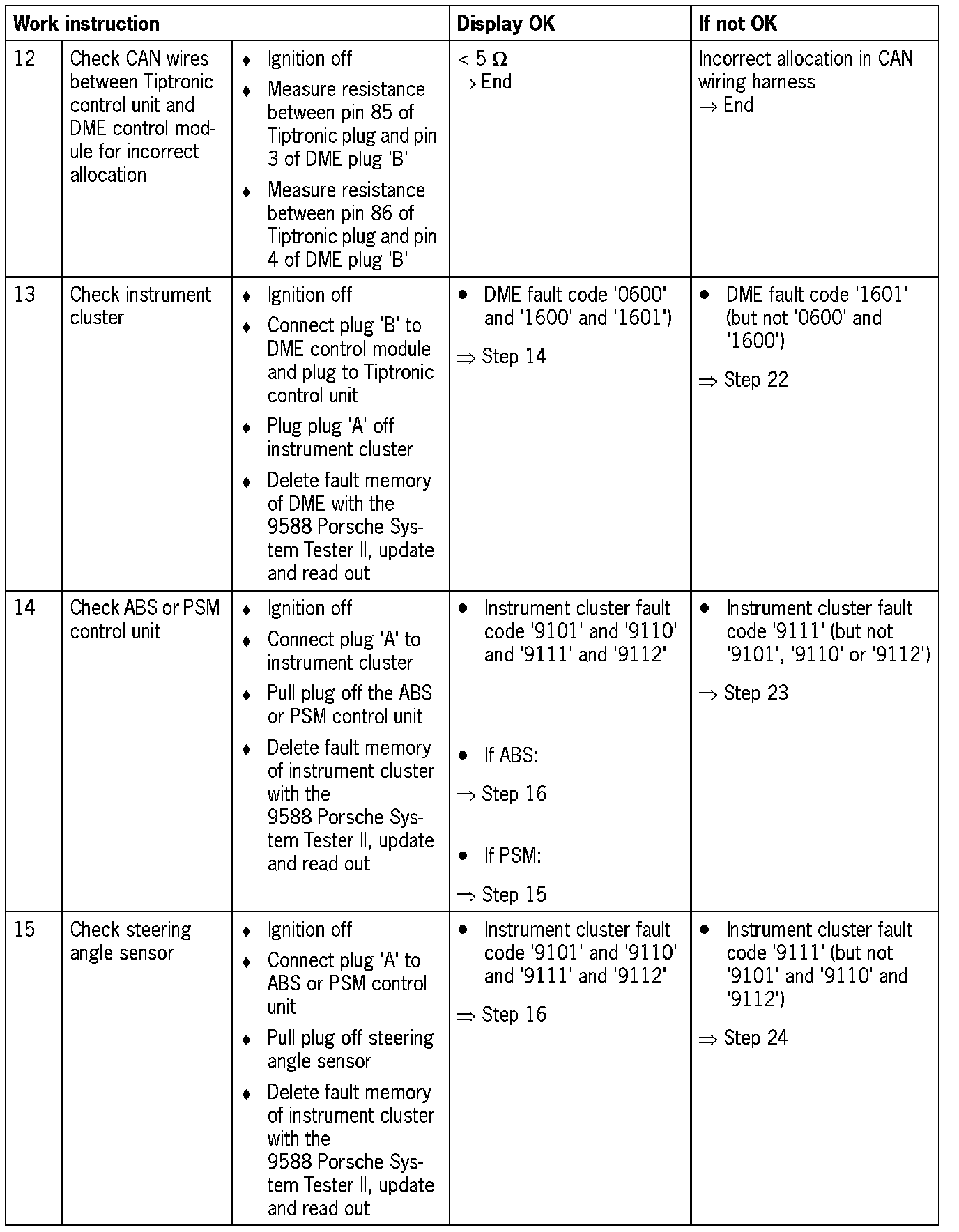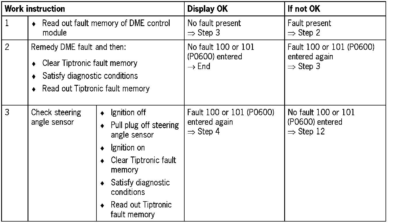 NOTE: For some test steps, the diagnosis conditions will not entirely be satisfied. Switching on the ignition is then sufficient. However, it may be that not all the fault codes listed appear.