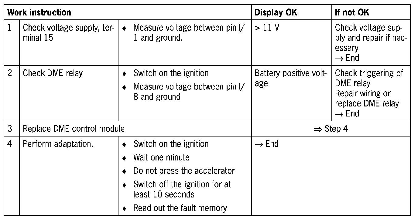 - DME control module faulty (checksum error caused by tampering with data record)