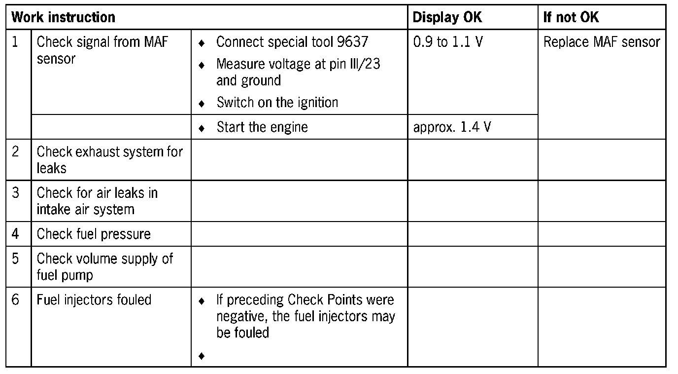 - Incorrect signal from MAF sensor
