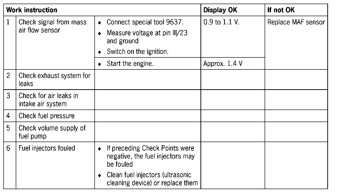 NOTE: Air leaks ahead of the oxygen sensors can lead to a fault in adaptation. Check exhaust system for leaks.